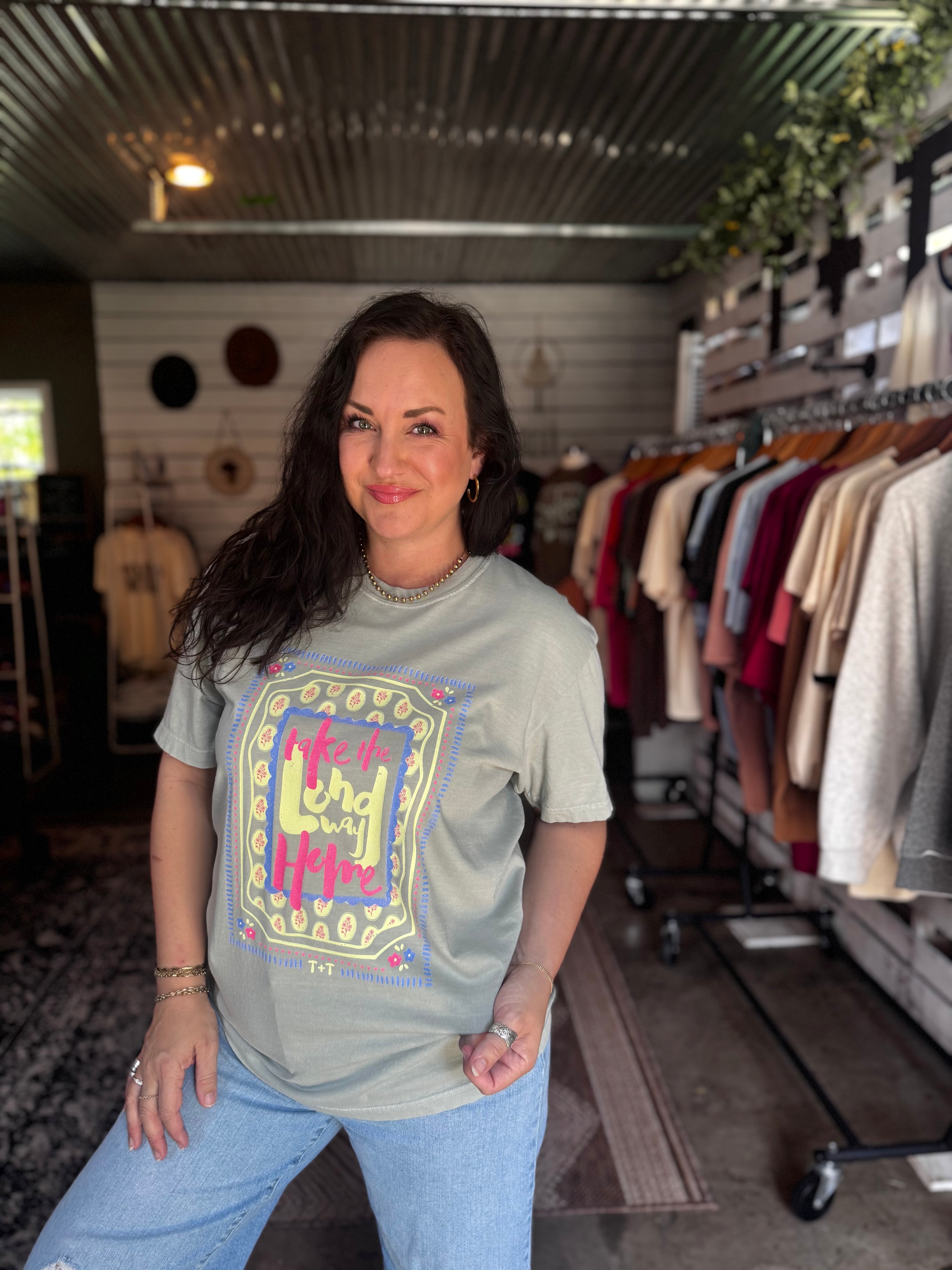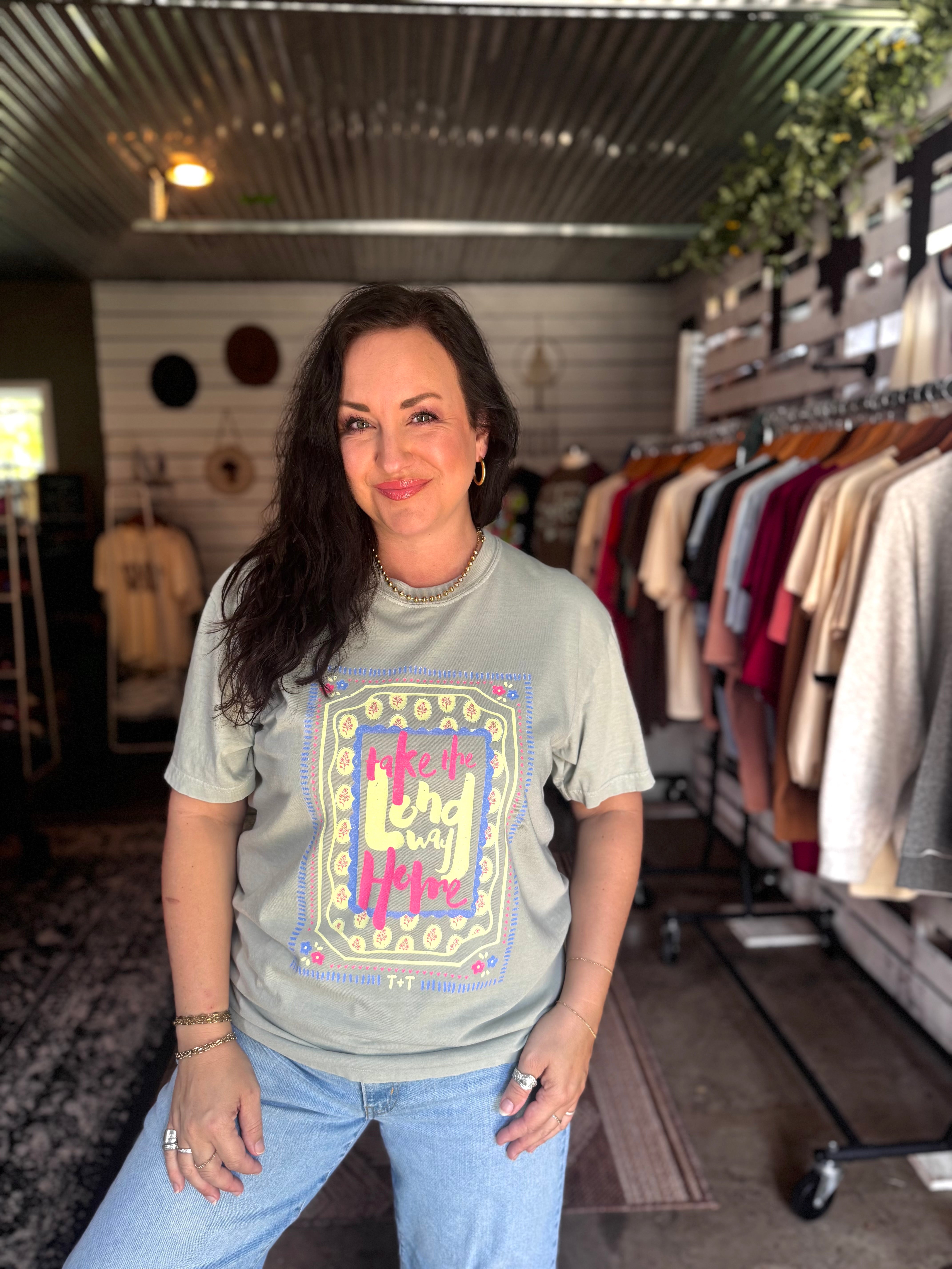 There’s something special about slowing down, rolling the windows down, and taking the long way home. This “Take the Long Way Home” graphic tee was made for Southern moms who find beauty in the everyday—back roads, golden hour sunsets, small-town charm, and moments that don’t need rushing.