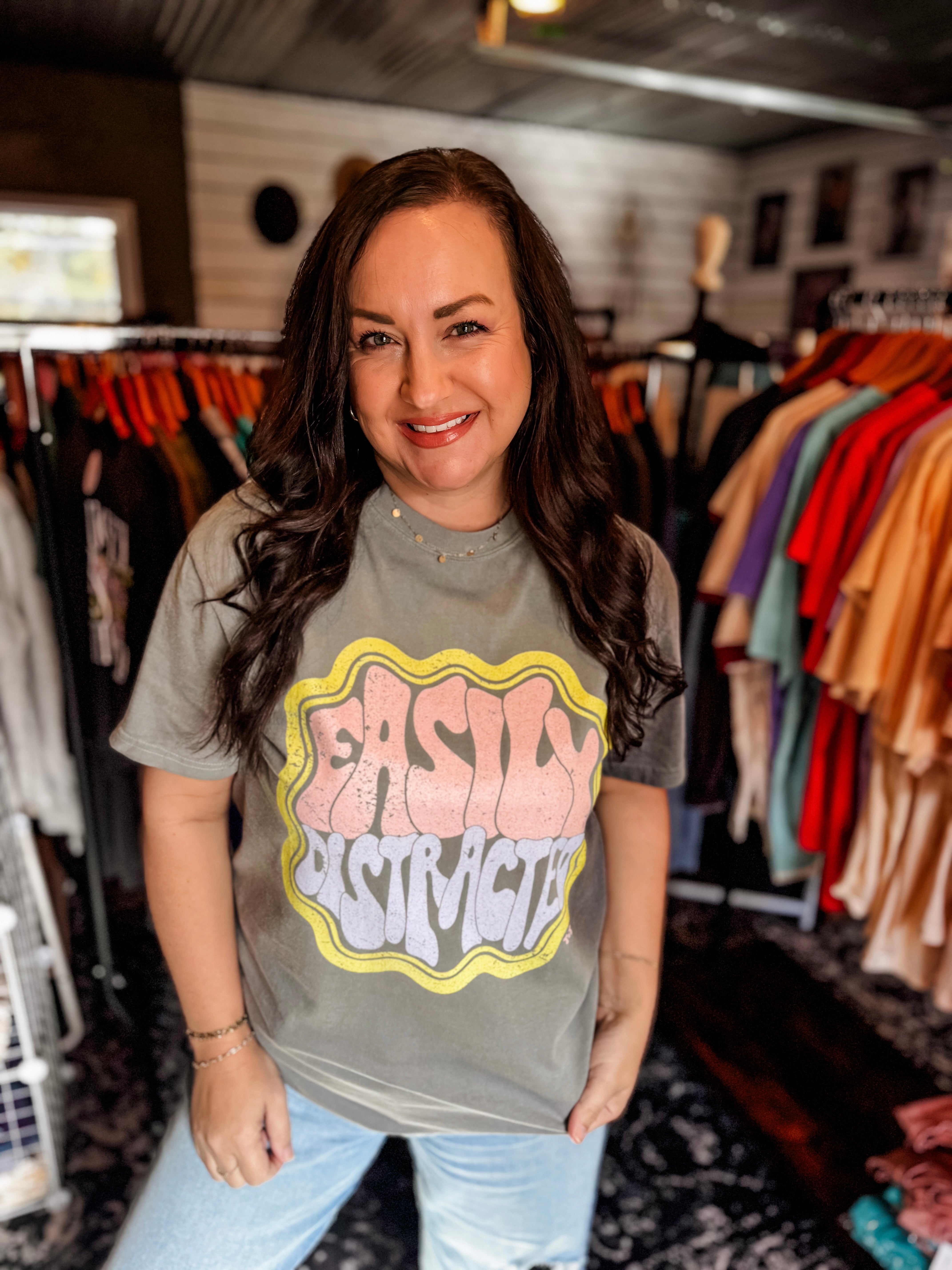 Easily Distracted Graphic Tee for Women | Funny Boutique T-Shirt | Casual Boho Style Tee