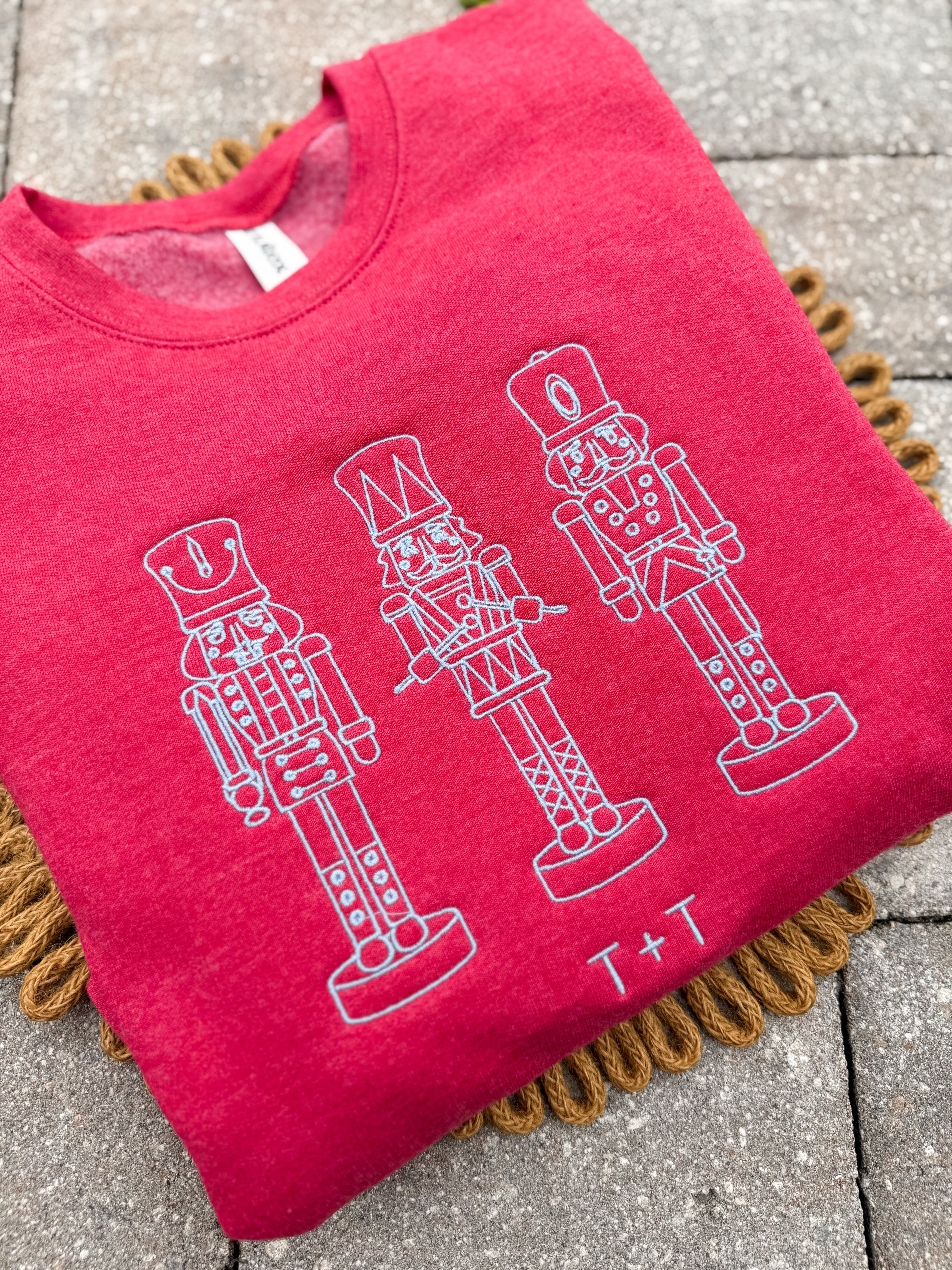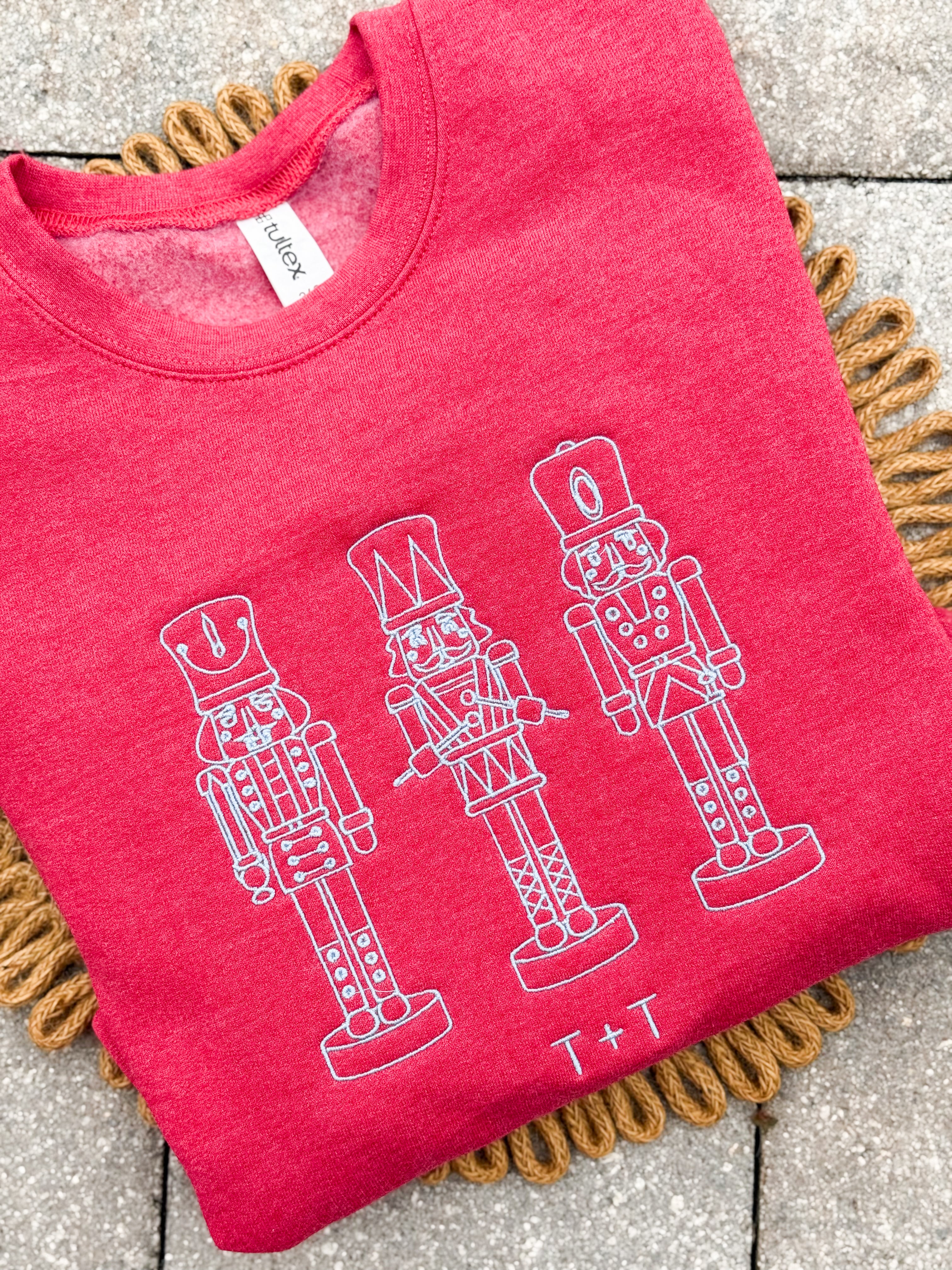 Nutcracker Trio Embroidered Red Unisex Sweatshirt