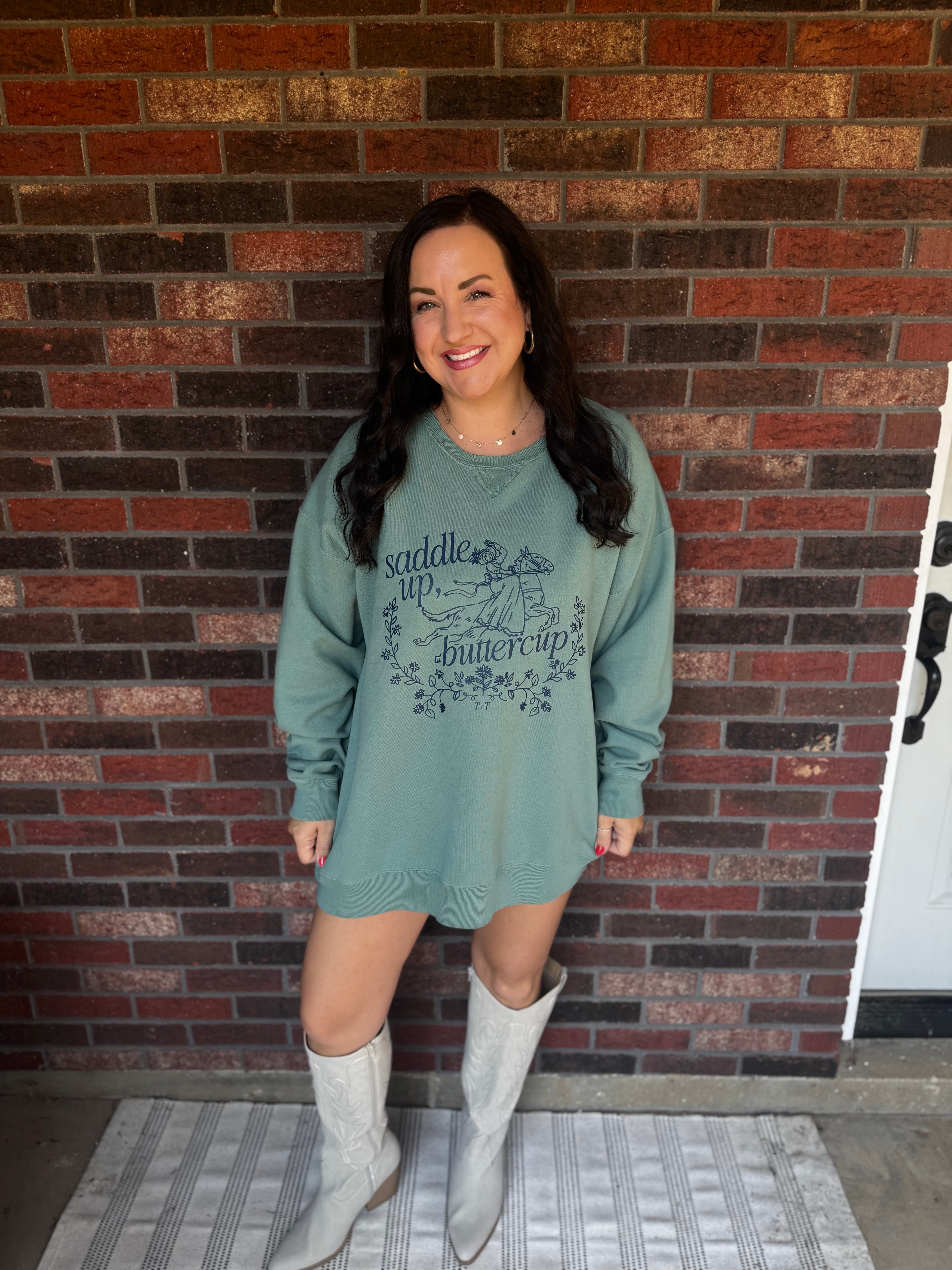 A little sass, a little grit, and a whole lot of yeehaw. This tee features a bold cowgirl graphic and the classic line, “Saddle Up, Buttercup,” reminding everyone you're not here to mess around. Perfect for rodeo nights, country concerts, or just bringing a little Western edge to your everyday look.