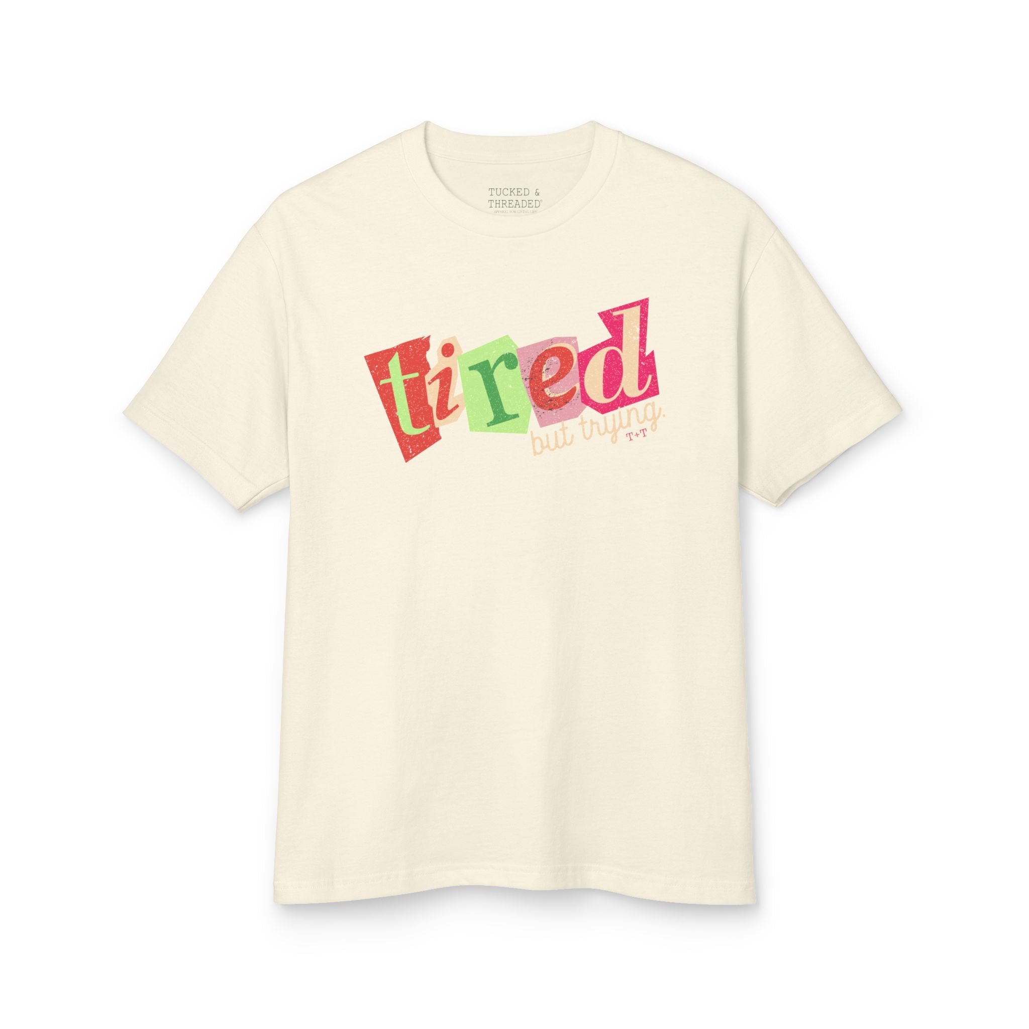 For the days when coffee isn’t enough — meet the Midweight Tee featuring our bold new “Tired But Trying” graphic. Printed on our thicker midweight cotton tee, this style is designed with an oversized unisex fit that’s equal parts comfortable and on-trend. A relatable piece for anyone giving it their all (even on the tired days).